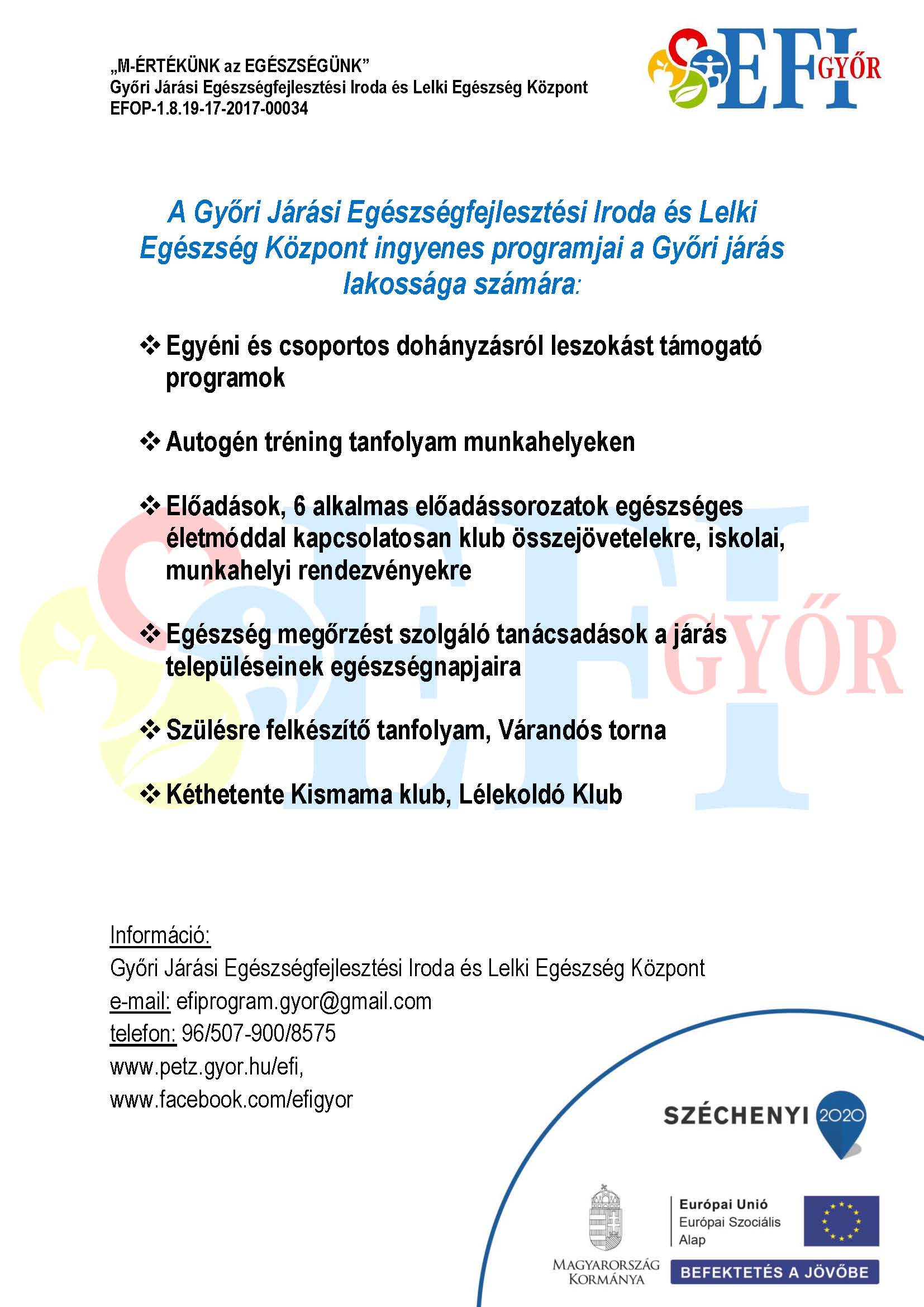 GYŐRI JÁRÁSI EGÉSZSÉGFEJLESZTÉSI IRODA ÉS LELKI EGÉSZSÉG KÖZPONT PROGRAMJAI A GYŐRI JÁRÁS LAKOSSÁGÁNAK