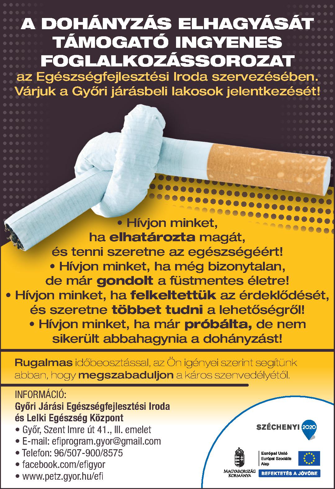 - A dohányzás elhagyását támogató ingyenes foglalkozássorozat