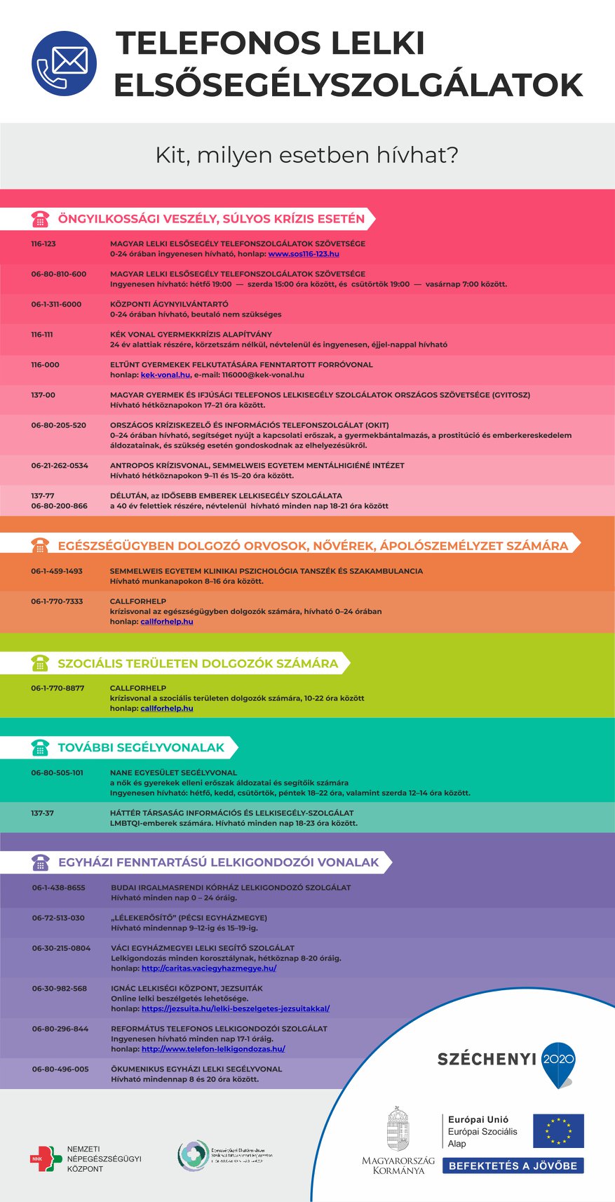 S.O.S. Telefonos Lelki Elsősegély Szolgálat éjjel-nappal 116-123,
